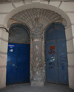 Не менее ярко дом был декорирован изнутри. Пол в подъездах был вымощен очень красивой бело-голубой кафельной плиткой. Перила представляли собой металлическую узорную решетку с цветочным орнаментом, ступени лестниц были сделаны из серого мрамора.