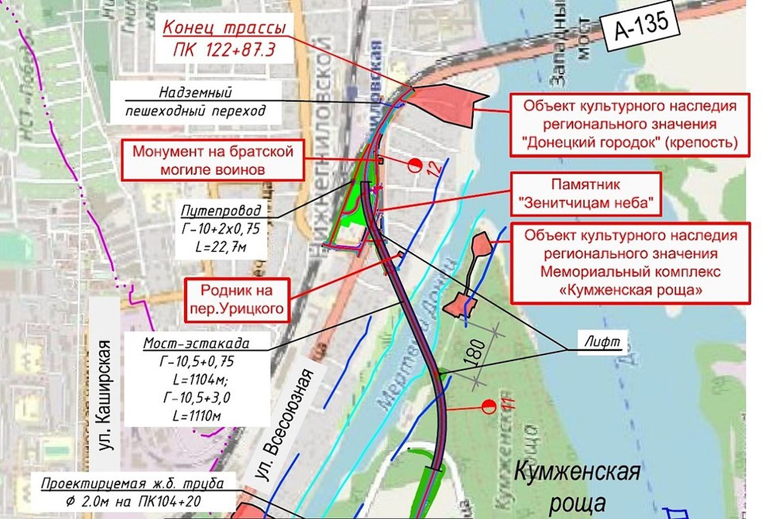 Строительство второй очереди «Западной хорды» замкнет Ростовское транспортное кольцо. Это позволит решить проблему пробок в донской столице, вывести транзитные потоки из города, а также поможет обеспечить безопасное и качественное транспортное сообщение. Второй участок хорды начнётся от улицы Совхозной в Ростове, пройдёт на удалении от Кумженской рощи – через Мёртвый Донец и к Западному мосту. На этом этапе построят четырёхполосную дорогу протяжённостью 7,5 километра. Проектом предусмотрены четыре эстакады и путепровода, три транспортные развязки и надземный пешеходный переход. По словам представителей регионального минтранса, дорога изначально спроектирована таким образом, чтобы не затронуть объекты культурного и исторического наследия. Все запланированные к строительству участки находятся на значительном удалении от мемориального комплекса «Кумженская роща», памятника «Зенитчицам неба», монумента «Погибшим при защите Ростова», Преполовенского прихода и родника на пер. Урицкого. Трасса пройдет над всей существующей инфраструктурой Кумженской рощи, в том числе пешеходными дорожками и подъездной дорогой к мемориальному комплексу. Перекрывать уже имеющиеся дороги она не будет.